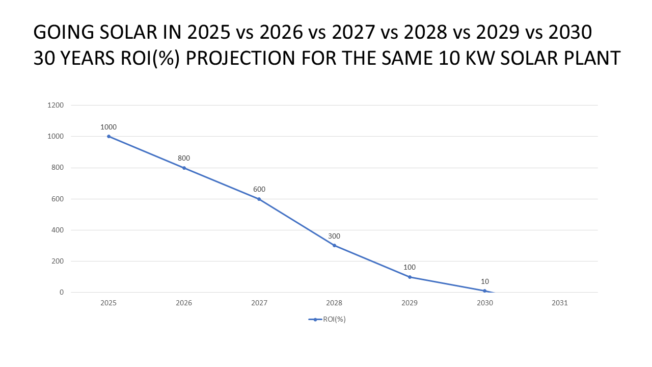A Solar Plant will work for Minimum 30 Years and will give you benefit via Free Power/ Zero Electricity Bill.