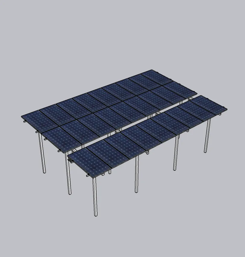 The Verto Ls is a 14.58 kw system, this model is suitable for the house with sloping RCC roof. The solar panels will be mounted on a 70cm tall GI structure. The structure will be designed to match the angle of the existing sloping RCC roof. Elegant beauty of the house will be given an upgrade with modern technology.