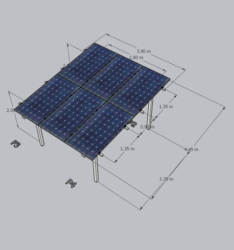 The PHOTON 3 S is a 3.24kw system, this model is suitable for the house with sloping RCC roof. The solar panels will be mounted on a 2.8cm tall GI structure. The structure will be designed to match the angle of the existing sloping RCC roof. Elegant beauty of the house will be given an upgrade with modern technology.