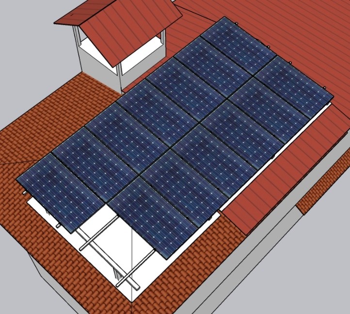 The HELIX 7 p is a 7.02kw system, this model is suitable for the house with sloping RCC roof. The solar panels will be mounted on a 70cm tall GI structure. The structure will be designed to match the angle of the existing sloping RCC roof. Elegant beauty of the house will be given an upgrade with modern technology.