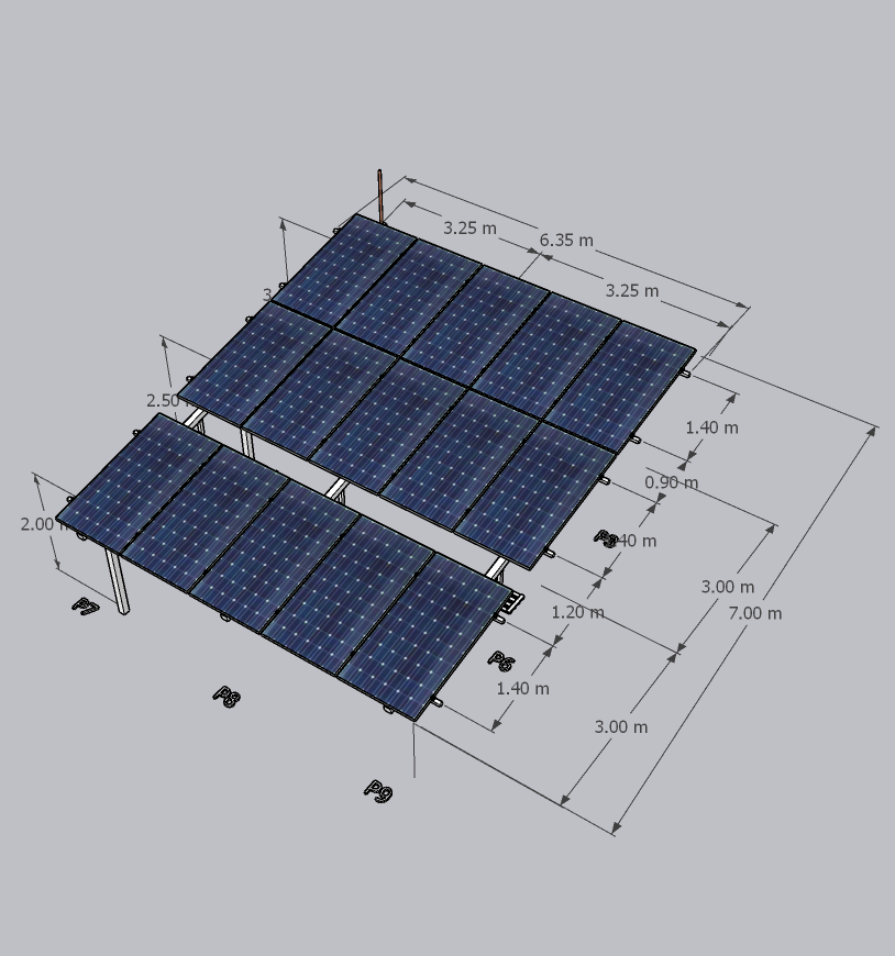 The DELTA 8 s s is a 8.1kw system, this model is suitable for the house with a flat RCC roof. The solar panels will be mounted on a 2.8m tall GI structure. The space under the panels can be utilized as it is. A stylish & futuristic balcony space can be designed with DELTA 8 s.