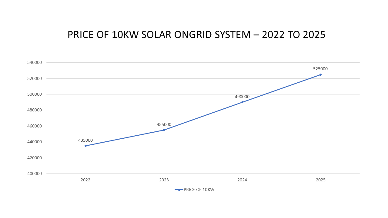 The cost of solar components has increased steadily, reflecting global instability, and our government's push to Make in