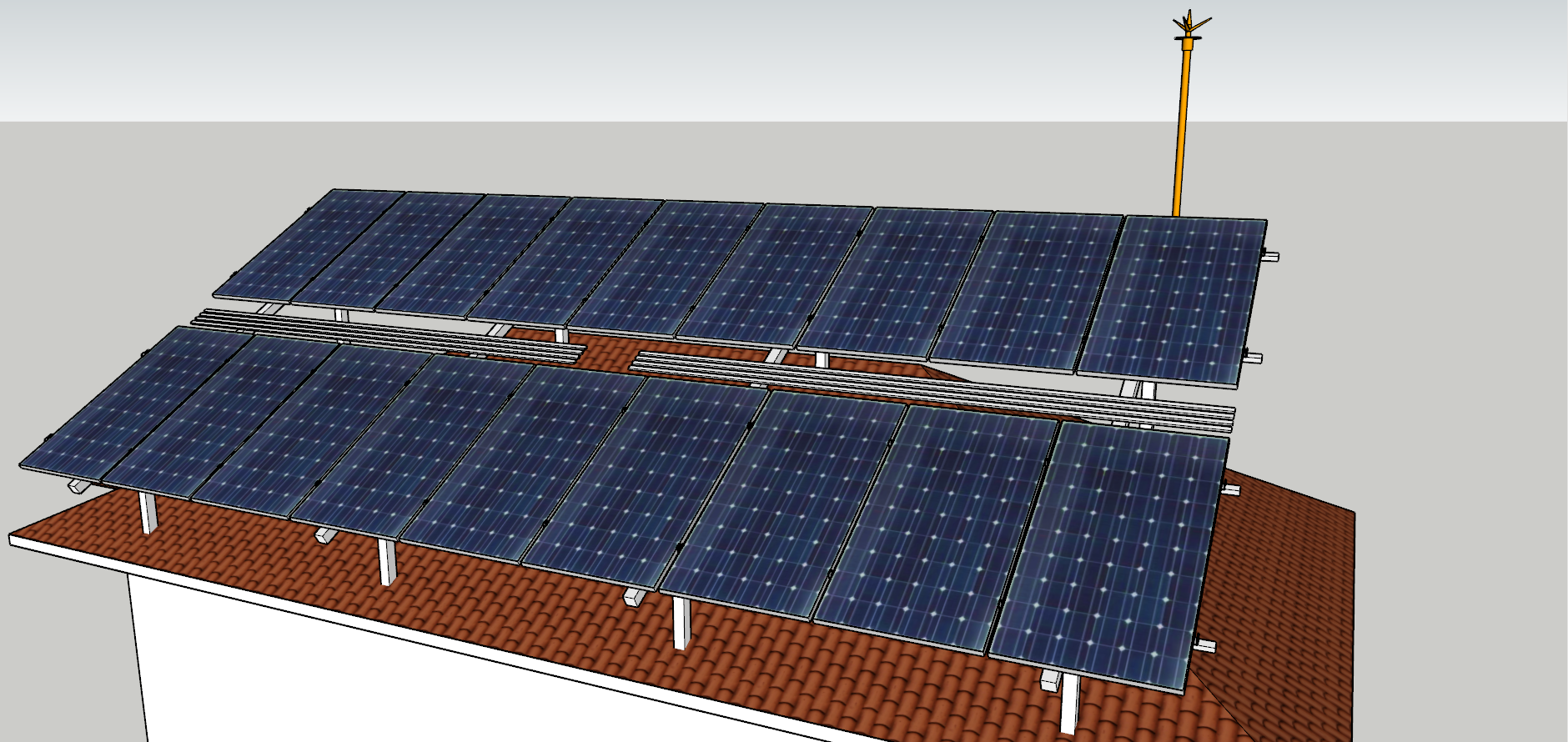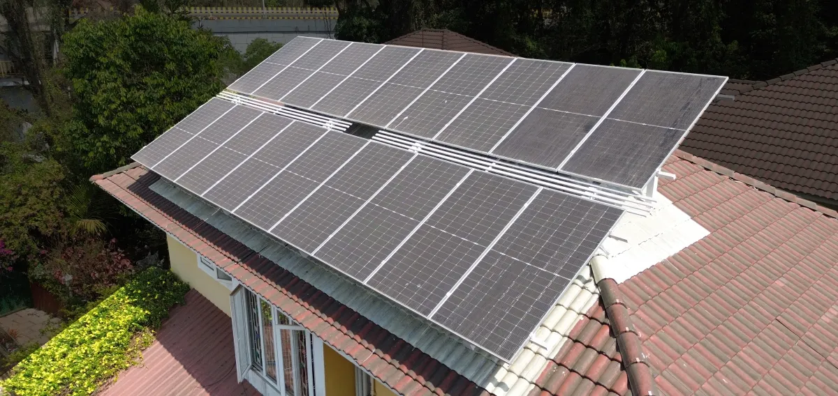 The Nova 10 Ls is a 9.72 kw system, this model is suitable for the house with sloping RCC roof. The solar panels will be mounted on a 70cm tall GI structure. The structure will be designed to match the angle of the existing sloping RCC roof. Elegant beauty of the house will be given an upgrade with modern technology.