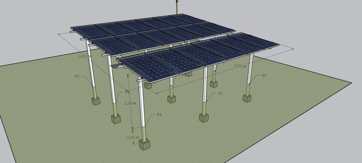The Nova 10 s is a 9.72kw system, this model is suitable for the house which needs a ground mounted structure to utilize the space as a car park under the solar panel. The solar panels will be mounted on a 2.8m tall GI structure.