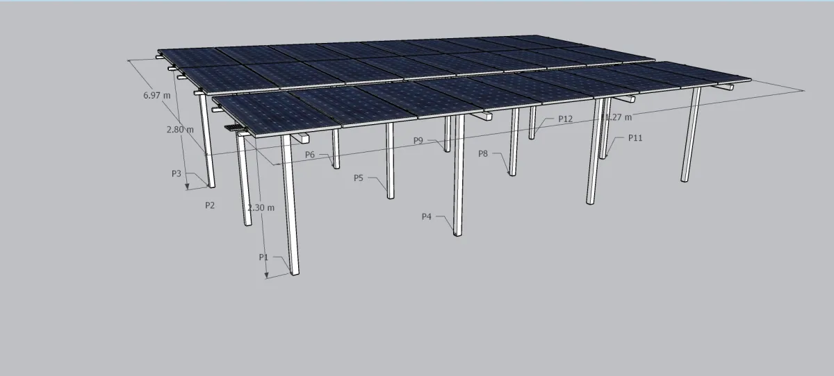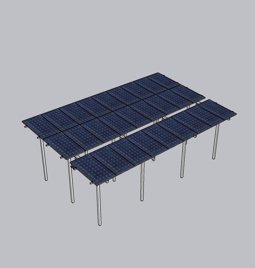 The Verto 14.5 S is a 14.58 kW system. This model is suitable for houses with a flat RCC roof. The solar panels will be mounted on a 2.8m tall GI structure. The space under the panels can be utilized as it is. A stylish and futuristic balcony space can be designed with Verto 14.5 S.