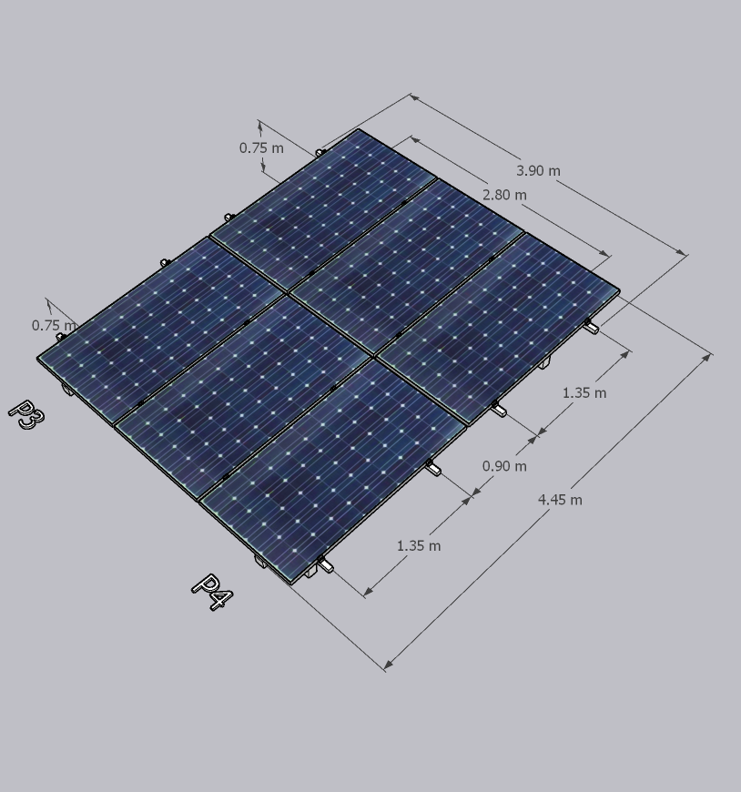 The PHOTON 3 Ls is a 3.24kw system, this model is suitable for the house with sloping RCC roof. The solar panels will be mounted on a 70cm tall GI structure. The structure will be designed to match the angle of the existing sloping RCC roof. Elegant beauty of the house will be given an upgrade with modern technology.