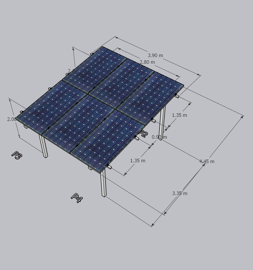 The PHOTON 3 S is a 3.24kw system, this model is suitable for the house with sloping RCC roof. The solar panels will be mounted on a 2.8cm tall GI structure. The structure will be designed to match the angle of the existing sloping RCC roof. Elegant beauty of the house will be given an upgrade with modern technology.